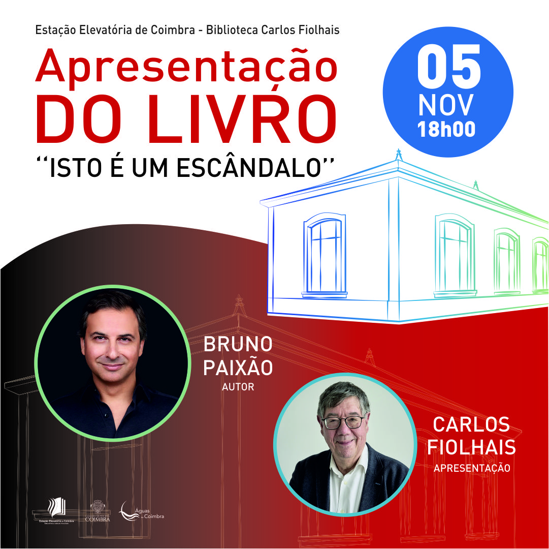 Na quarta-feira, dia 5 de novembro, às 18h00, a Estação Elevatória de Coimbra – Biblioteca Carlos Fiolhais recebe uma conversa em torno do livro Isto É Um Escândalo, da autoria de Bruno Paixão. A sessão contará com a presença do autor e com apresentação de Carlos Fiolhais.