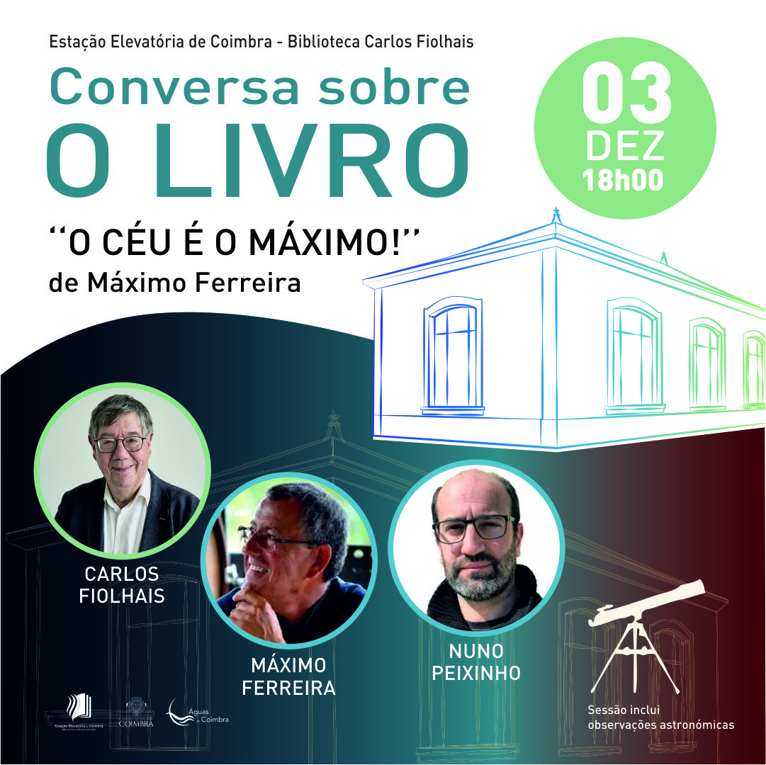 A Estação Elevatória de Coimbra – Biblioteca Carlos Fiolhais recebe, no próximo dia 3 de dezembro, às 18h00, uma sessão dedicada ao livro O Céu É o Máximo!, de Máximo Ferreira, físico, astrónomo e reconhecido divulgador de ciência.